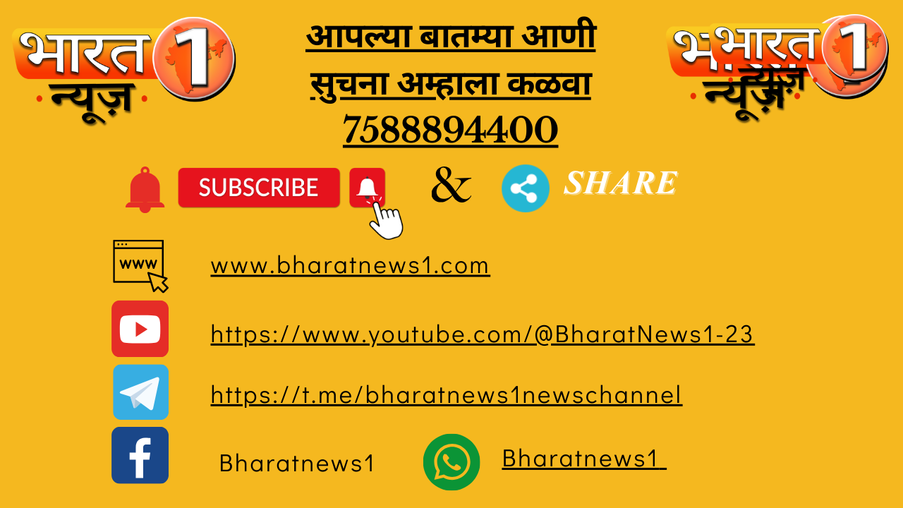 सबस्क्राइब करा आणी शेर करा वेब न्यूज चैनल :- http://bharatnewss1.com/ युट्यूब चैनल. :- https://www.youtube.com/@BharatNews1-23 टेलीग्राम चैनल :- https://t.me/bharatnews1newschannel फेसबुक. https://www.facebook.com/profile.php?id=100095691483970&mibextid=ZbWKwL