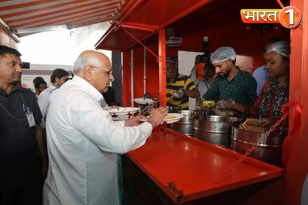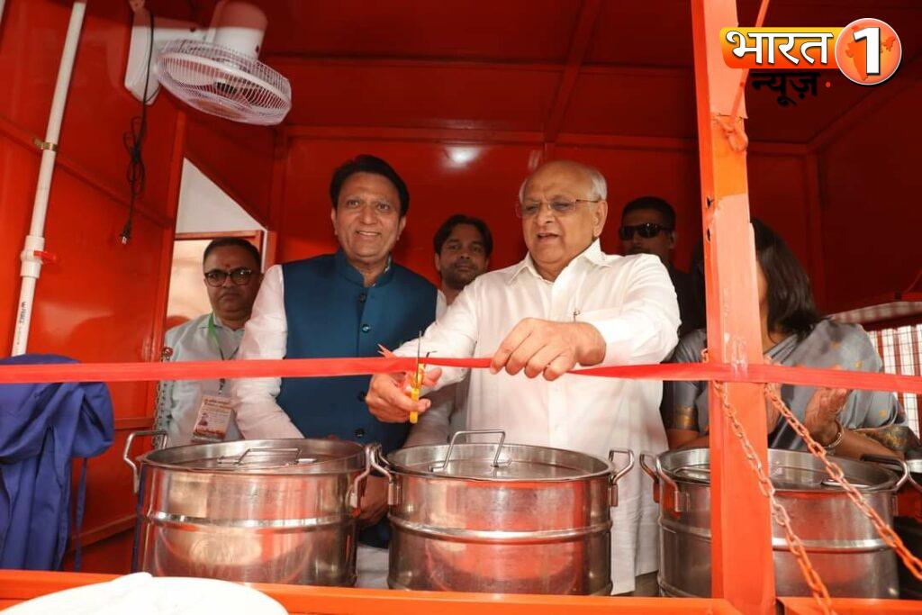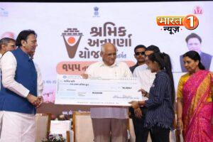 મુખ્યમંત્રી ભૂપેન્દ્રભાઈ પટેલે આજે અમદાવાદ ખાતેથી રાજ્યના શ્રમ-રોજગાર મંત્રી તેમજ અન્ય મહાનુભાવોની ઉપસ્થિતિમાં ‘શ્રમિક અન્નપૂર્ણા યોજના’ અંતર્ગત બાંધકામ શ્રમિકો અને તેમના પરિવારોને વ્યક્તિદીઠ ફક્ત ₹5 માં પૌષ્ટિક ભોજન પૂરું પાડતા 155 નવાં ભોજન વિતરણ કેન્દ્રોનો રાજ્યના 17 જિલ્લાઓમાં શુભારંભ કરાવ્યો હતો. આ અવસરે મુખ્યમંત્રી એ લાભાર્થી શ્રમિકોને સ્વહસ્તે ભોજન પીરસ્યું હતું તેમજ તેમની સાથે ભોજન લઈ શ્રમિકો પ્રત્યેની સંવેદનશીલતાનું ઉત્તમ દ્રષ્ટાંત પૂરું પાડ્યું હતું.